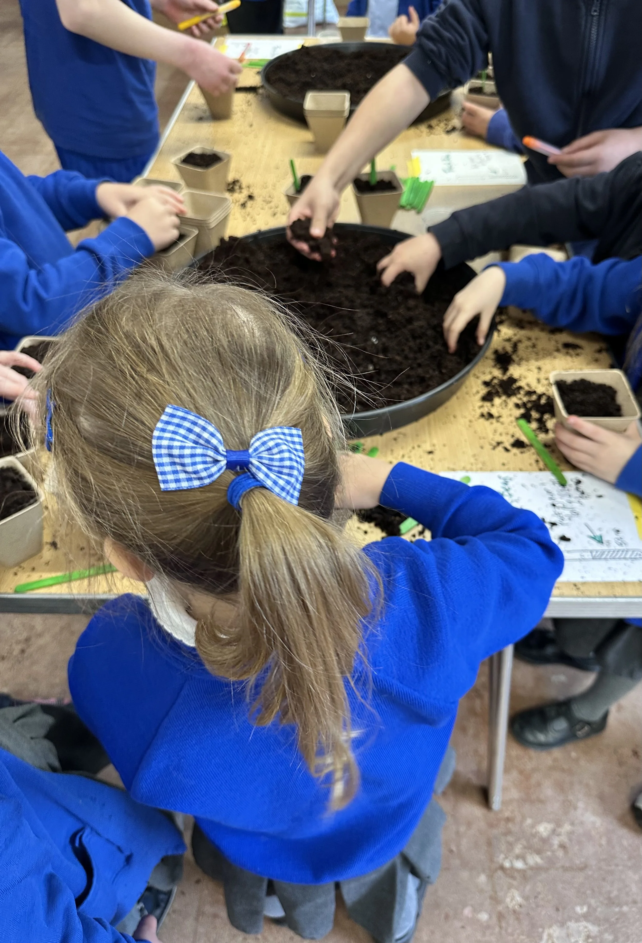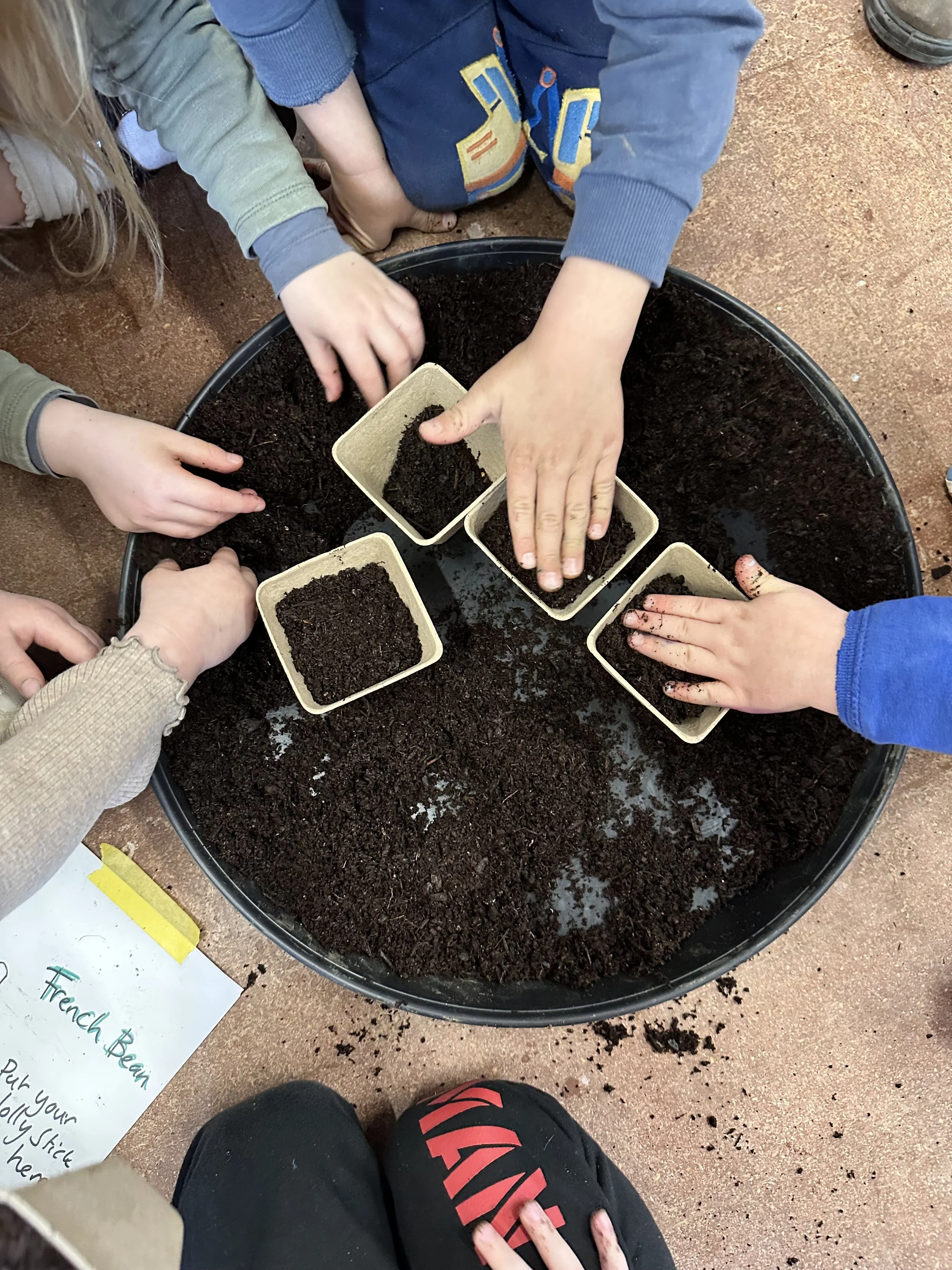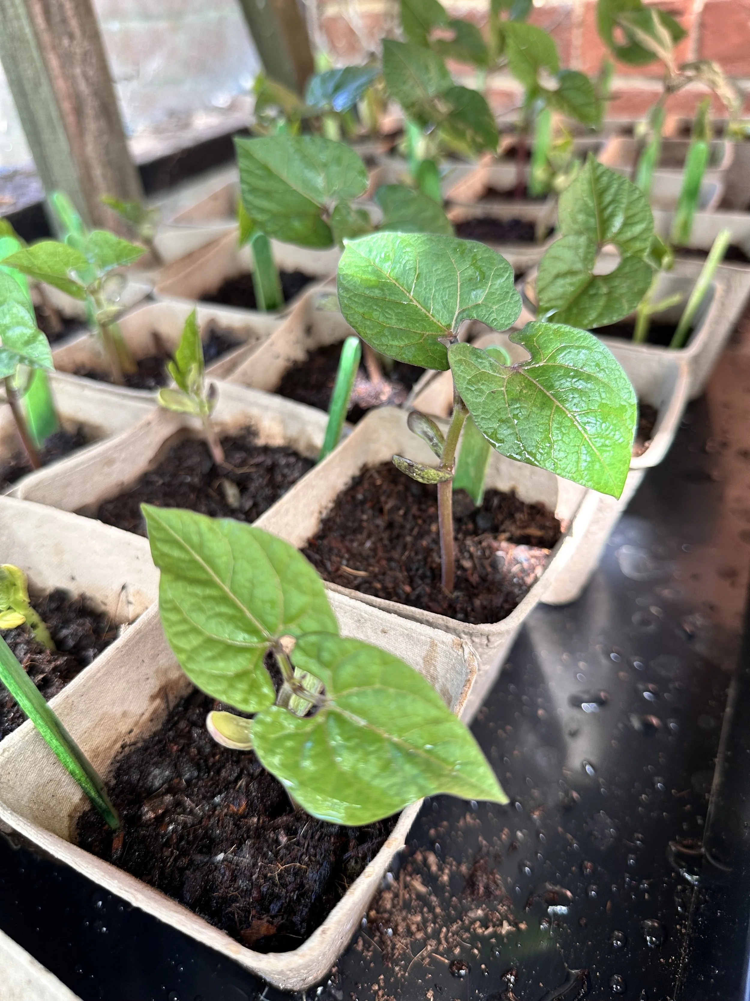 The first growing bed in our field is a community crop planted by local primary schools. After a successful grant application to the Coronation Living Heritage Fund via Tewkesbury Borough Council. 1000 seeds have been sown: sweetcorn, french climbing beans, squashes and sunflowers. They will grow as a companion crop with the beans using the sweetcorn as supports and the squashes giving ground-cover and enjoying shade underneath. The children will be invited to pick their crop in the late summer/autumn.